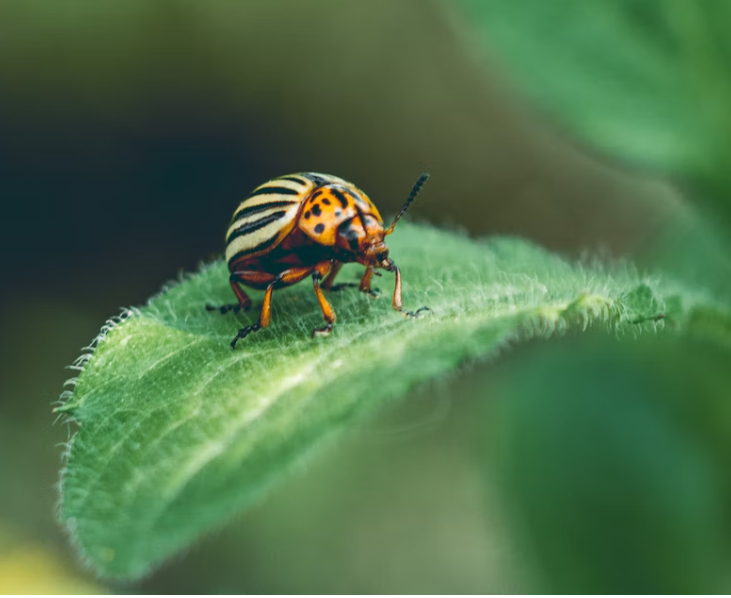 Eine besondere Plackerei war die Arbeit auf den Kartoffeläckern. Zunächst ging es darum, die Pflanzen von den Kartoffelkäfern zu befreien, bevor diese sie auffraßen. Der lateinische Name des Bösewichts, „Leptinotarsa decemlineata“, bedeutet „Zehnstreifen-Leichtfuß“. Falls Sie ihn nie persönlich kennengelernt haben, es handelt sich um einen 7 bis 15 Millimeter langen Gesellen mit einem Gewicht von 50 bis 170 Milligramm. Er ist gelb und längs der Flügeldecken ziehen sich dunkle Streifen. Wie viele das sind, das habe ich Ihnen ja schon verraten. Bei Gefahr kann der Kerl ein unangenehm schmeckendes Wehrsekret ausscheiden. Bleiben Sie ihm also lieber fern.