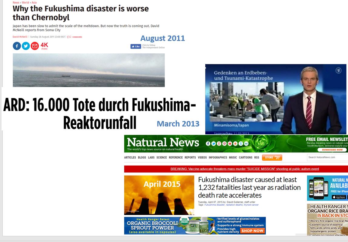 Auch zwei Jahre danach, als man längst Überblick über die Folgen der Katastrophe hatte, scheute sich die ARD nicht, von 16.000 Fukushima-Opfern zu sprechen.